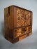 An elaborately inlaid three drawer marquetry cabinet, unusually, with tambour doors. This item was made in Japan, for export, during the late 19th or early 20th century.