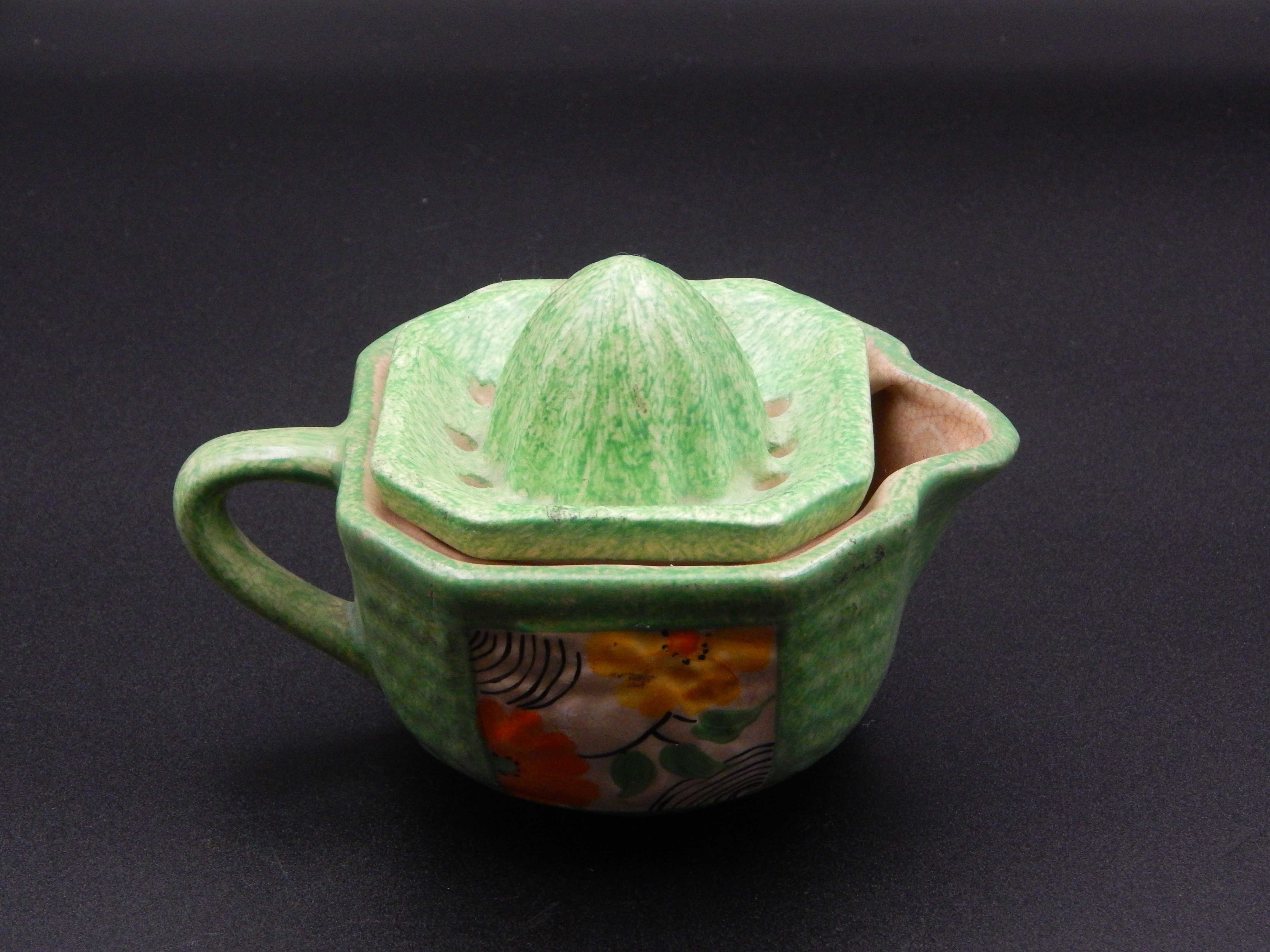 Art Deco style orange or lemon juice squeezer made by Podmore China, Hanley, Stoke-on-Trent during the 1930s or 1940s