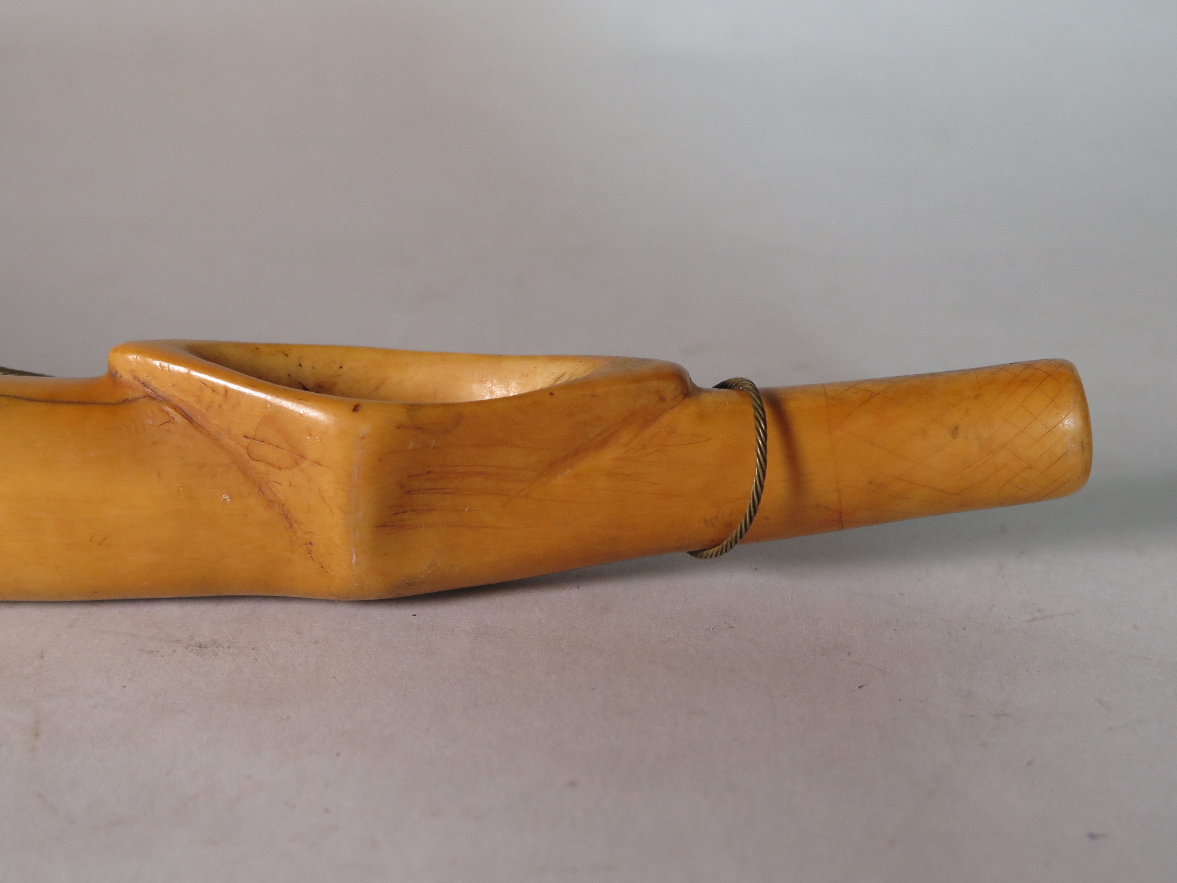 A rare, well patinated, plain and un-decorated ivory Oliphant (hunting horn) probably made in what is now Angola or the Democratic Republic of Congo during the 19th or early 20th Century.