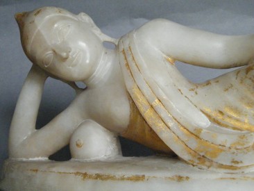 A large and heavy, partially gilded, Mandalay style marble Buddha finely carved in 19th Century Burma (Myanmar).